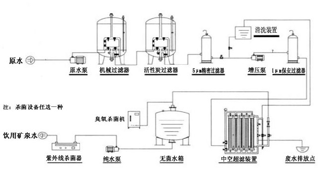 礦泉水設備是以膜兩側壓力差為動力,以機械篩分原理為基礎的一種溶液分離 ,使用壓力通常為0.2MPa--0.6MPa,分離孔徑1nm—0.1μm,可廣泛應用于物質的分離、濃縮、提純。超濾過程無相轉化,常溫操作,對熱敏性物質的分離尤為適宜,并具有良好的耐溫、耐酸堿和耐氧化性能,能在60℃ 以下,PH為2-11的條件下長期連續(xù)使用。
